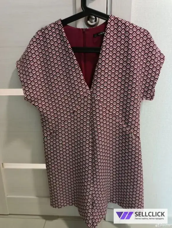 Вечерний комбинезон Zara, размер 42-44 (S/M), в отличном состоянии. Бордовый цвет с геометрическим узором и контрастной отделкой по бокам. Материал — вискоза для комфорта. Очень эффектно смотрится с тонким ремешком.