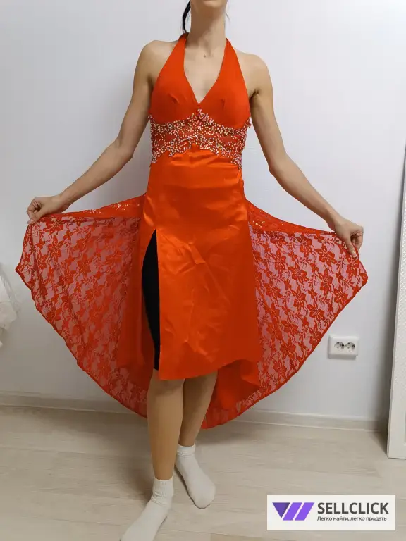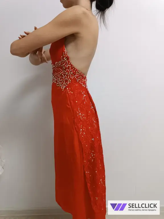 Вечернее платье для бальных танцев, размер 42 (S), ярко-красного цвета.
