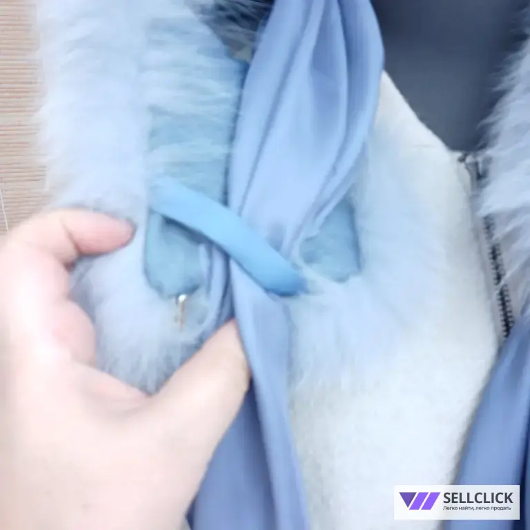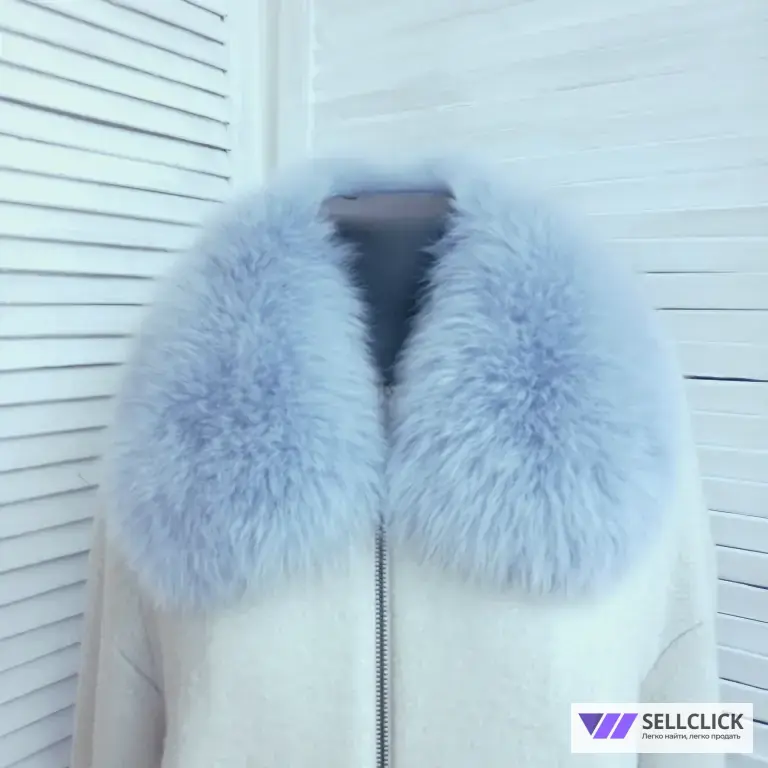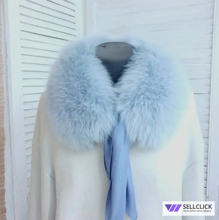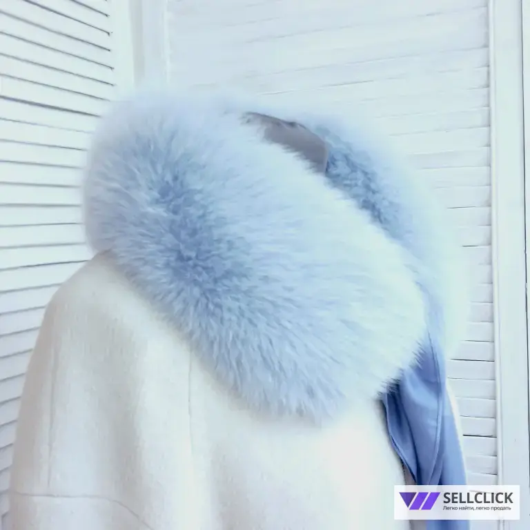 воротник выполнен из меха финского песца, нежно голубого цвета.
