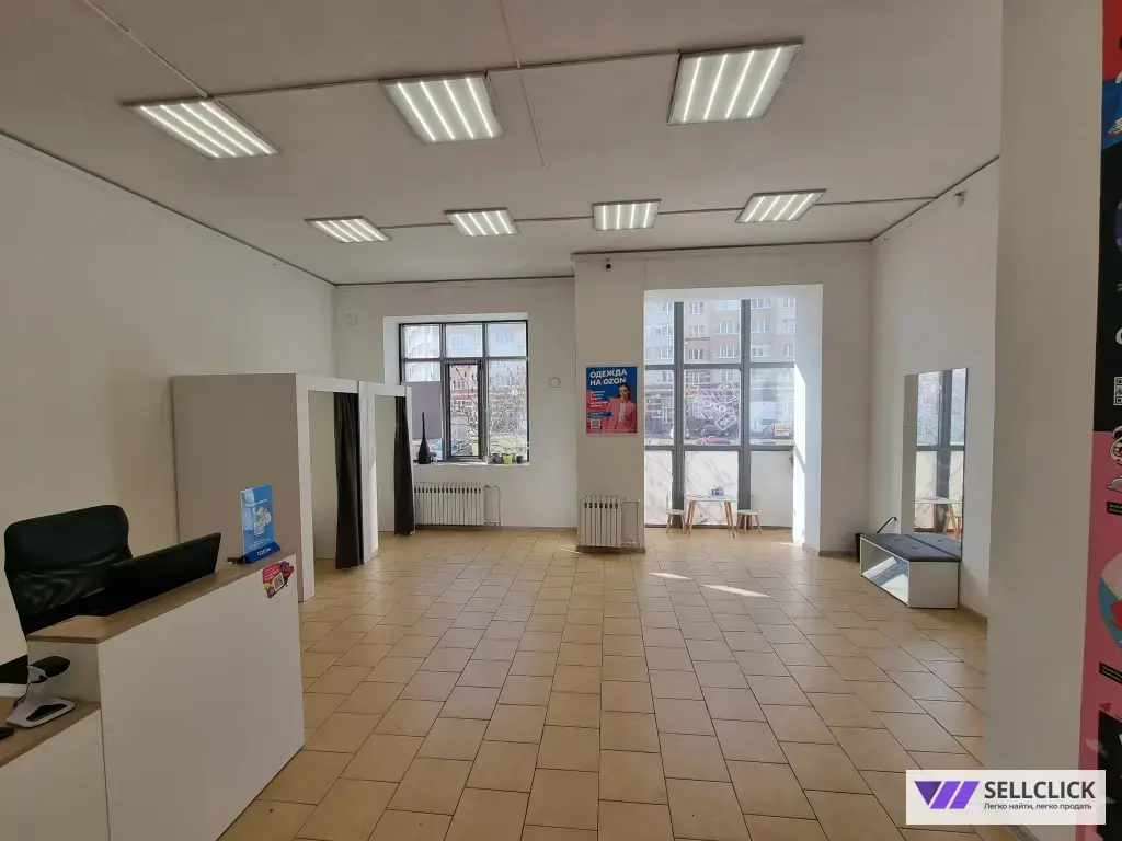 Площадь: 73 м² — светлое помещение с панорамными окнами и высокими потолками.