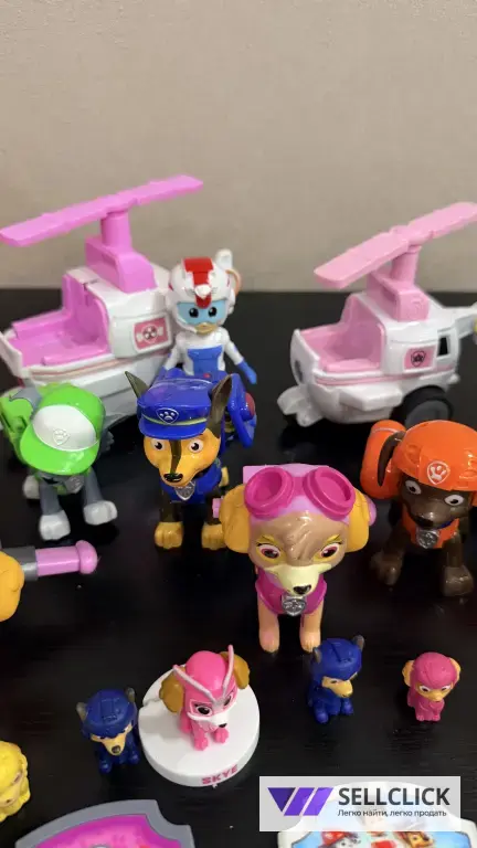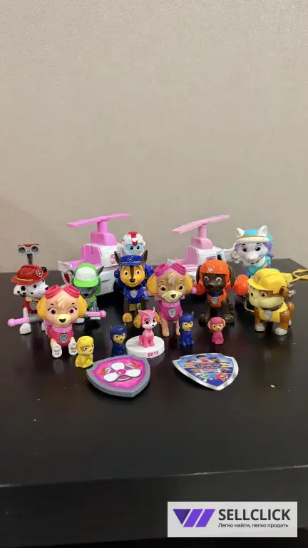 — фигурки щенков (Chase, Skye, Marshall, Rubble, Zuma, Rocky и др.)