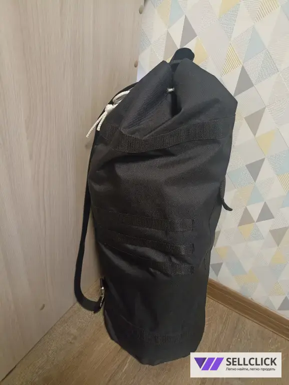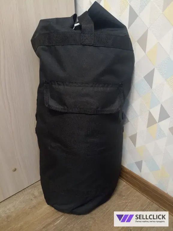 Спереди карман для мелочи, сверху клапан, затягивается все веревкой, очень вместительный для поездки, зимний костюм (бушлат и брюки) влазит без проблем), подойдёт так же для вахтовиков, сшито из ткани Оксфорд 600D выдерживает 1000мм водного столба, прошито армированными нитями для прочности и долговечности. Имеется внутренний чехол из Оксфорда 210D, как дополнительная защита от намокания. На сумке нанесены крепления Молли для установки на мотоцикле сзади.