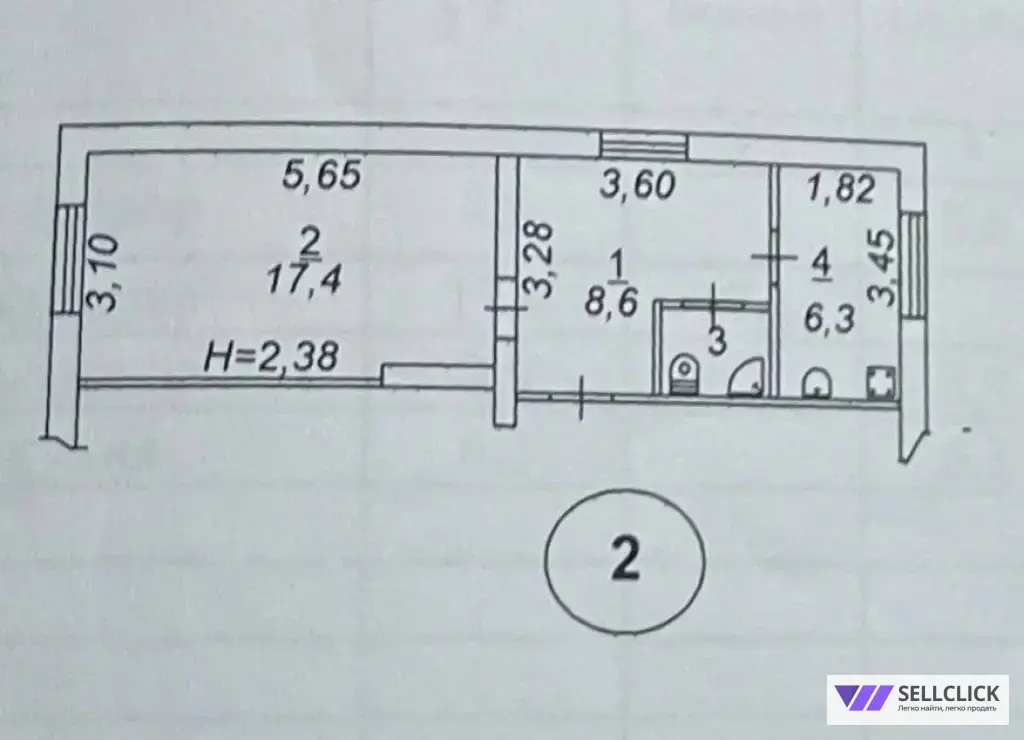 Общая площадь составляет 35.2 квадратных метра