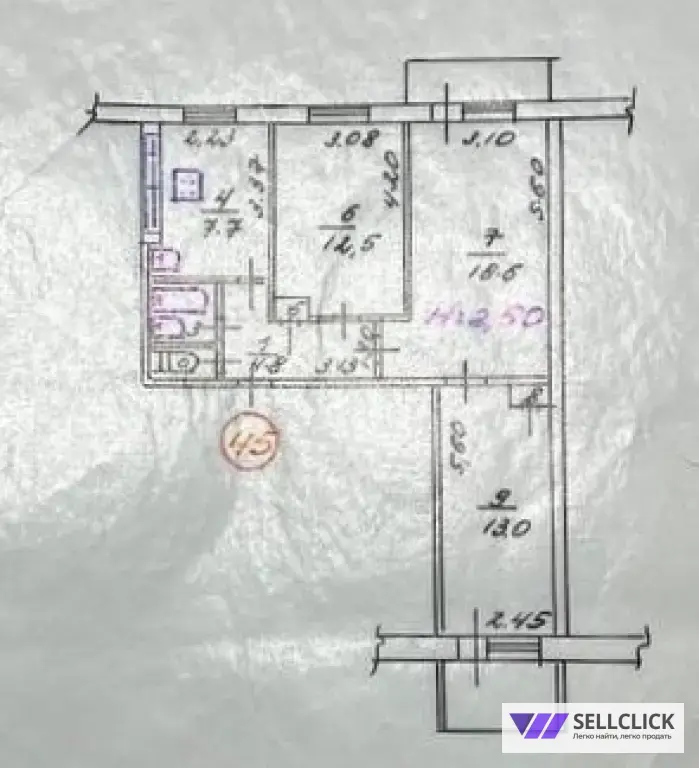 Общая площадь 63.3 квадратных метров, а кухня 7.7
