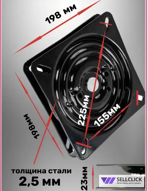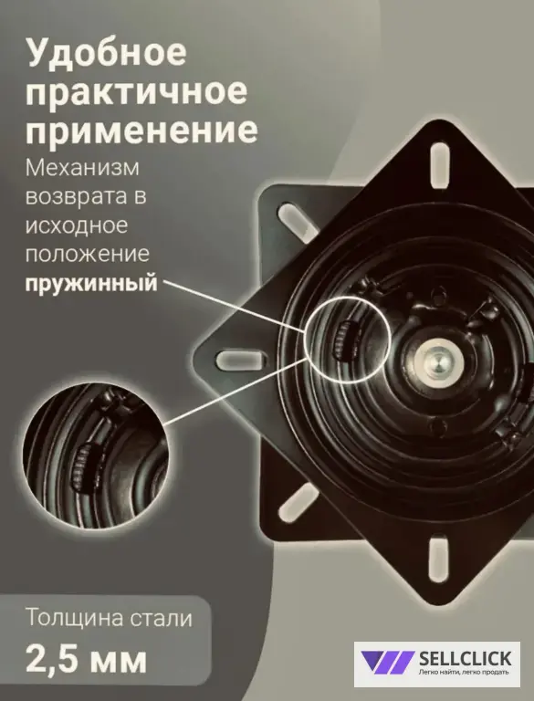 Поворотный механизм с возвратом 20х20мм — это надежное решение для установки в стулья и кресла, в системы поворотной столешницы и торгового оборудования, обеспечивая плавный бесшумный поворот. Его компактные размеры (20х20 мм) позволяют использовать его в различных конструкциях, а черный цвет легко впишется в любой интерьер. Механизм обеспечивает плавное вращение и надежный возврат в исходное положение, что делает его идеальным для использования в офисных креслах, стульях, а также в торговом оборудовании. С его помощью вы сможете создать мебель, которая будет не только стильной, но и максимально комфортной. Выдерживает вес до 250 кг.