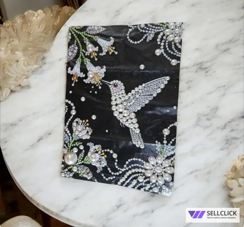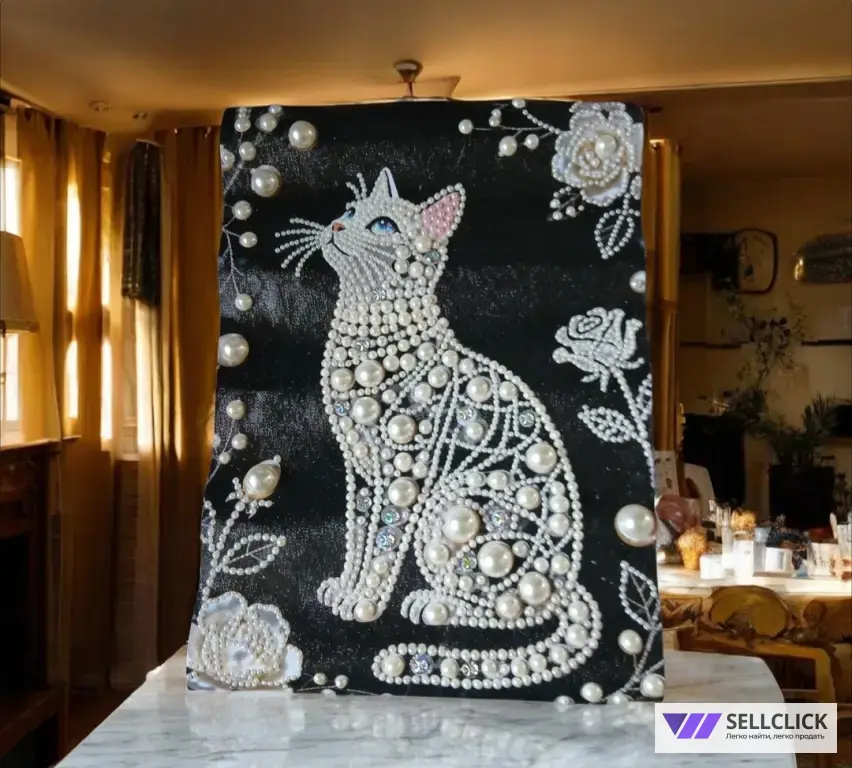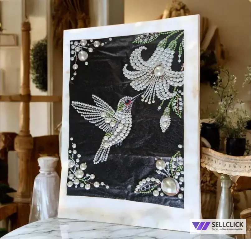 Вручную созданная чёрно-белая картина с жемчугом — минимализм, который говорит сам за себя.