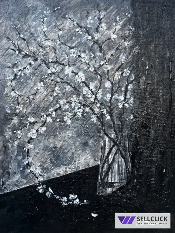 • Текстурный контраст: Вы чувствуете влажную прохладу окна и видите тепло живых, цветущих веток. Этот диссонанс завораживает.• Эмоция: Картина создает то самое состояние «дорогой сердцу меланхолии».