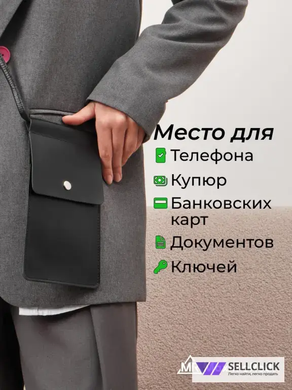 Эта сумка чехол на плечо станет надежным хранителем вашего телефона или других необходимых мелочей, при этом подчеркивая ваш безупречный вкус.