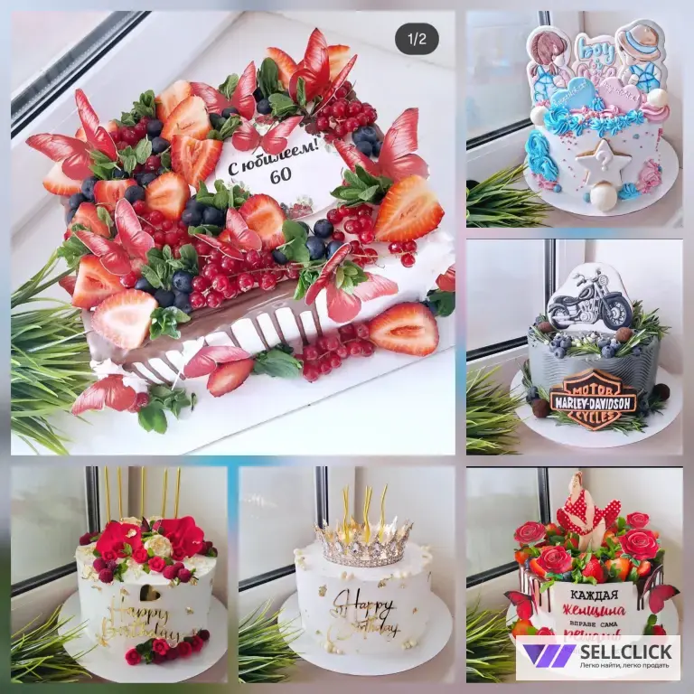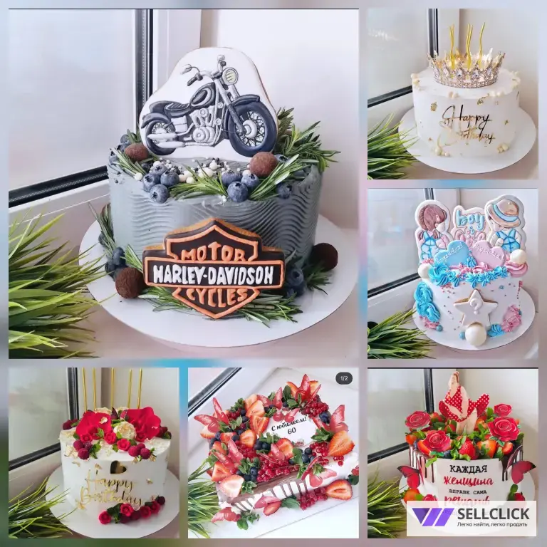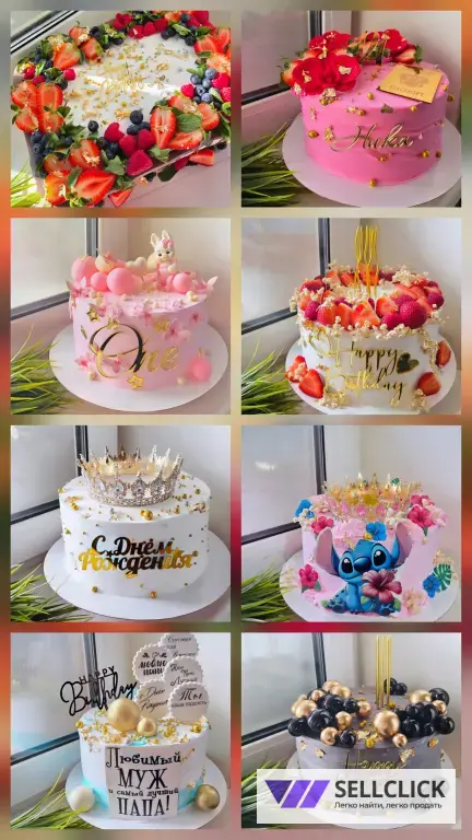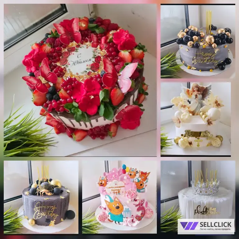 Я кондитер! Представляю широкий ассортимент тортов на любой случай: День Рождения, детский праздник, юбилей или свадьба. На ваш выбор более 1000 различных тортов, а также вы можете заказать торт по индивидуальному эскизу!