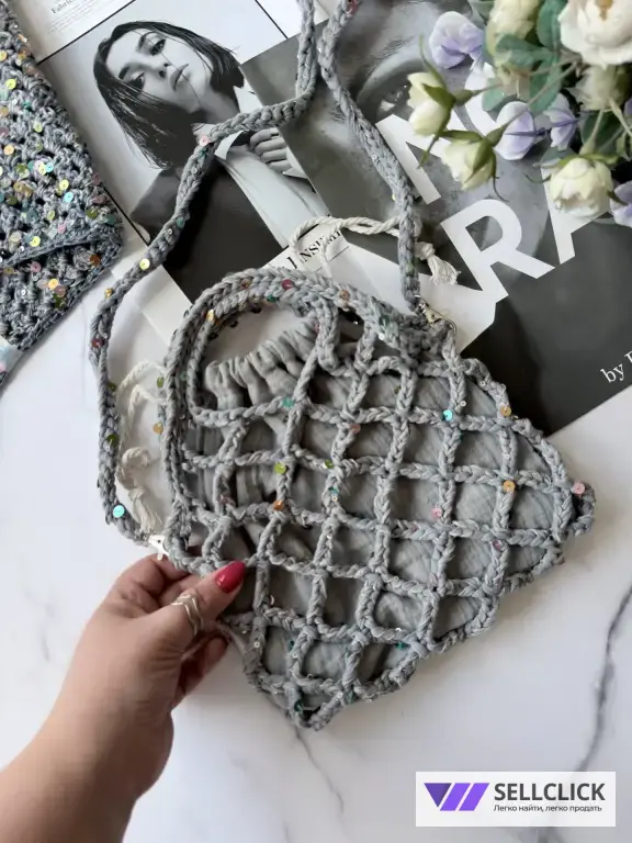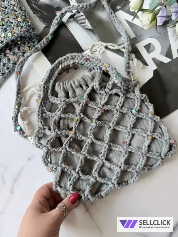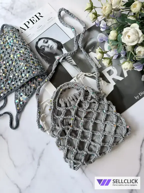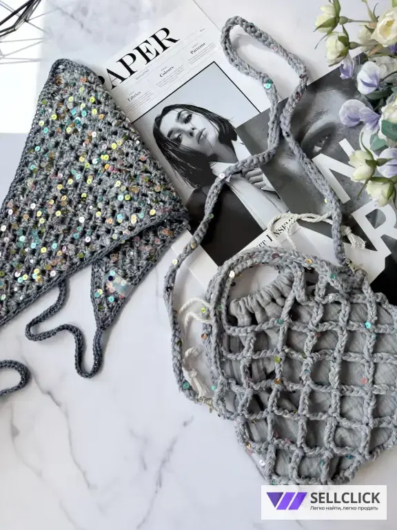 - ручная работа из мягкой трикотажной пряжи с добавление пайеток.