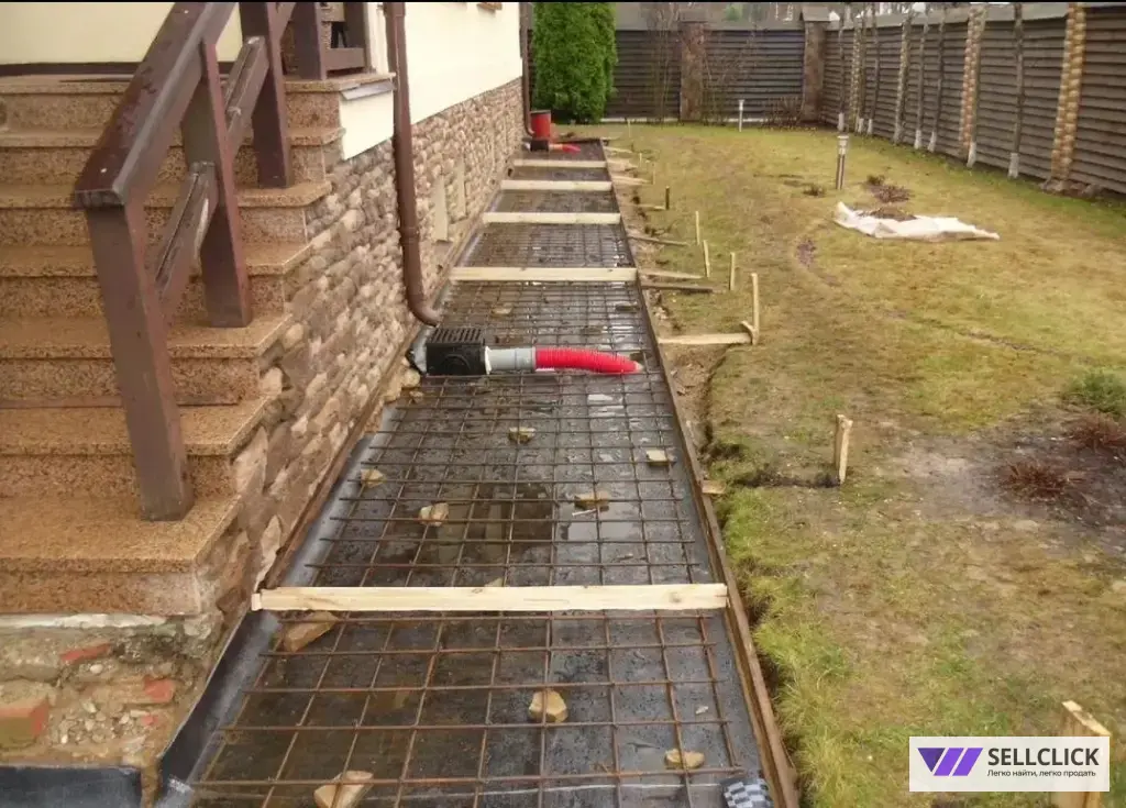 ● Армирование и заливка бетонной отмостки