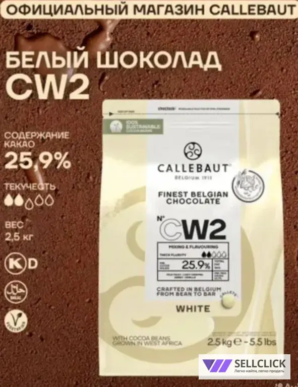 Бельгийский белый шоколад Callebaut CW2. 25,9% какао, 23,7% молоко, 33,9% жиры. CW2-RT-U71, (2,5 кг)