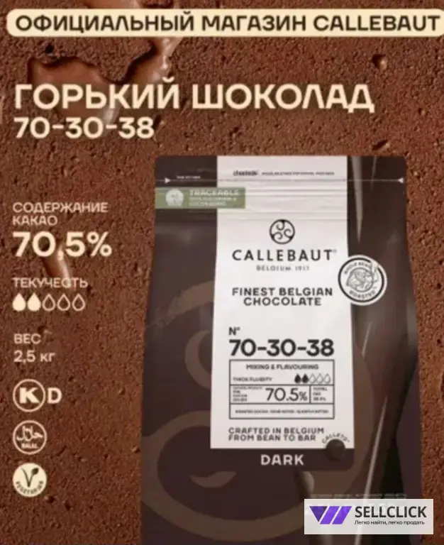 Бельгийский горький шоколад 70-30-38 Callebaut, 70,5% какао. 70-30-38-RT-U71, (2,5 кг)