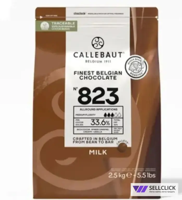 Callebaut 823 - 2,5 кг - Настоящий бельгийский молочный шоколад 33,6% в каллетах PREMIUM класса
