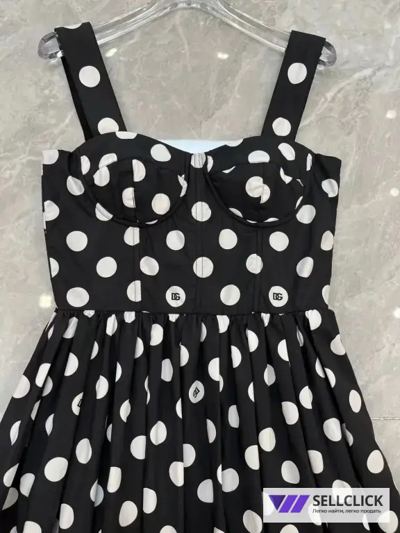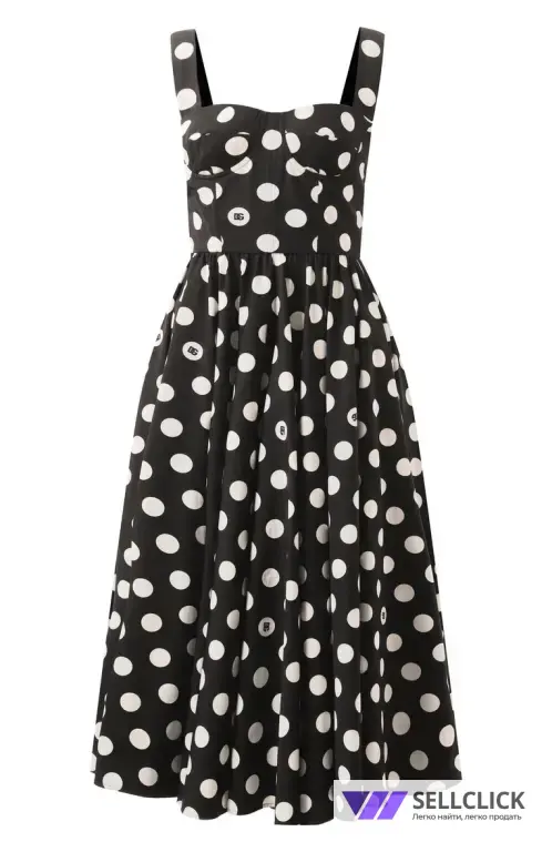 100% хлопковый поплин в белый горошек с монограммами DG