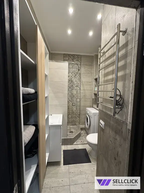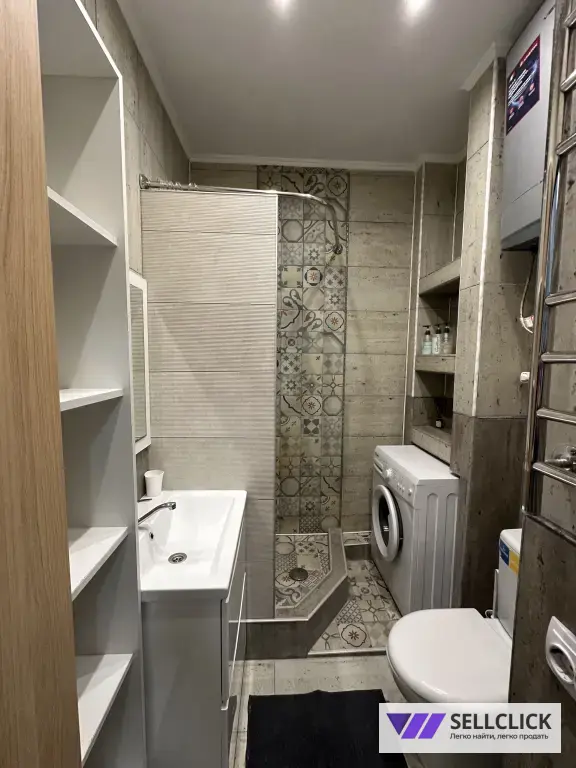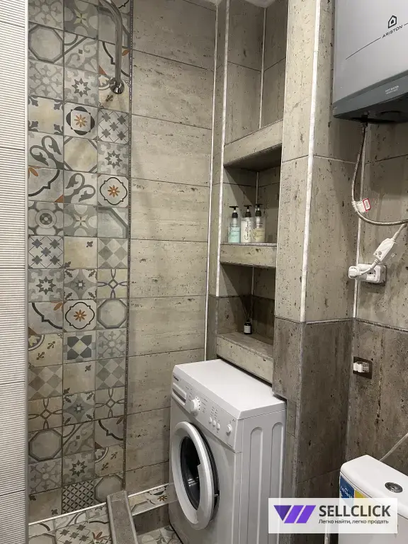 Bаннaя комната совмещена. В ванной расположена душевая, стиральная машина, бойлер, фен , полотенца, утюг , гладильная доска и.т.д.