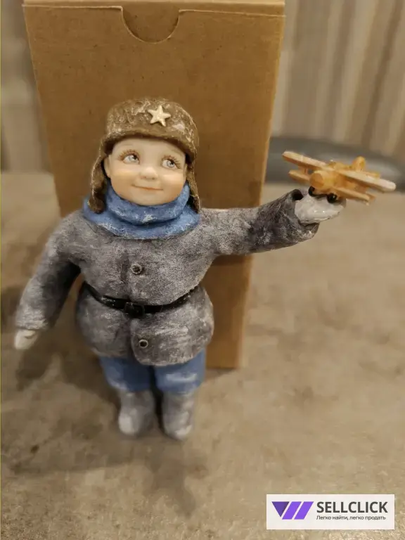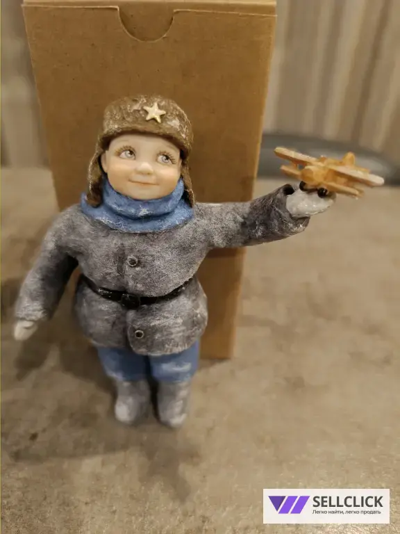 Ватная елочная игрушка Мальчик с самолётом