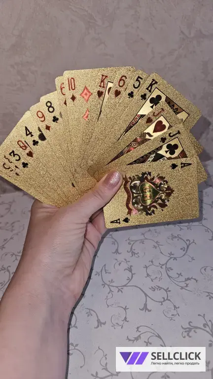 Карты имеют золотистое/серебрянное покрытие и могут использоваться для покера или других карточных игр.